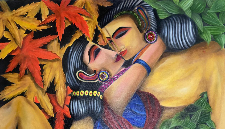 She is also inspired by nature, mostly flowers and leaves. Her recent works also include conceptual art based on colour themes as she believes that the colour for a particular theme by itself is a metaphor of the artist’s thoughts.