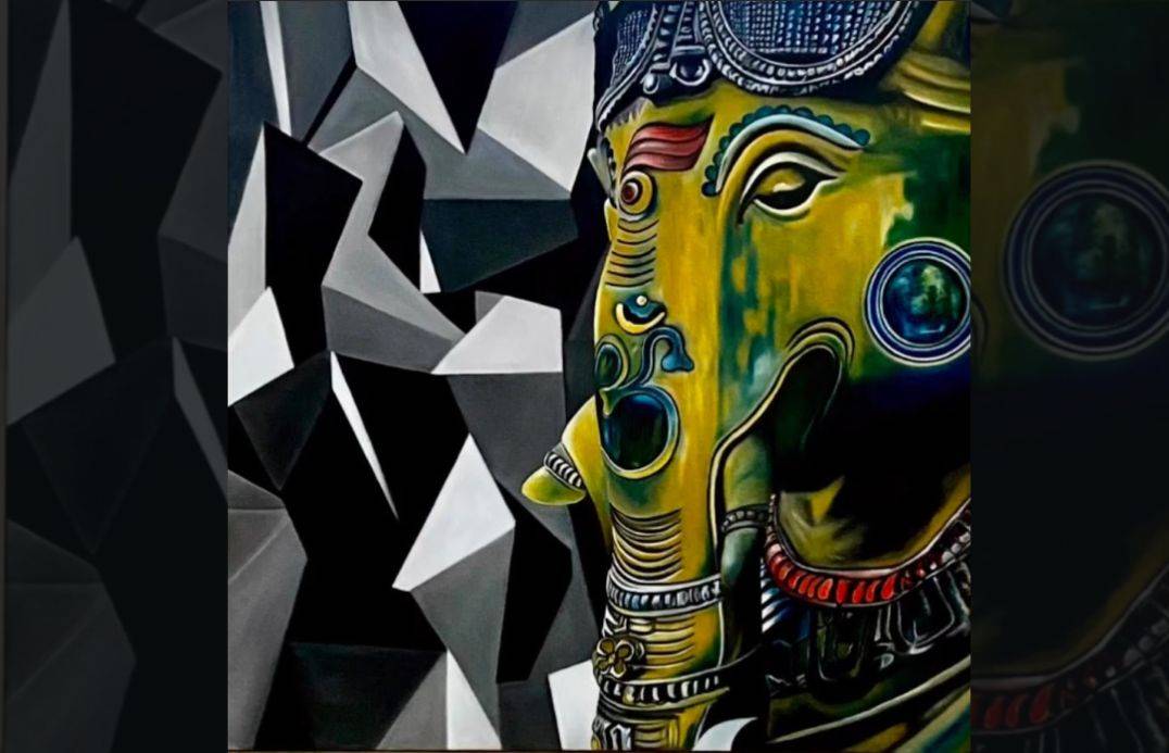 Acrylic Painting on Canvas, Size- 36”*36” - Ganesha